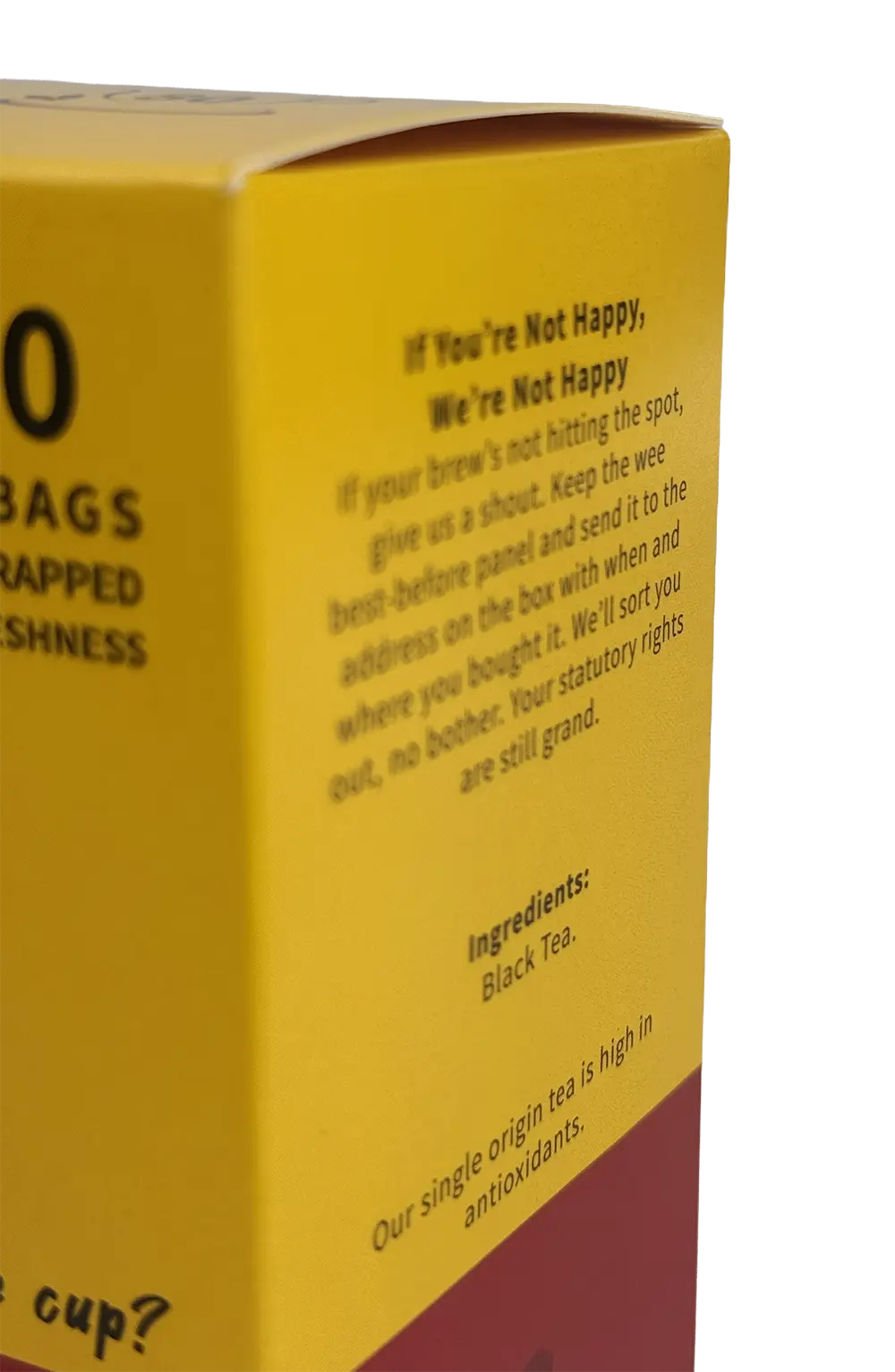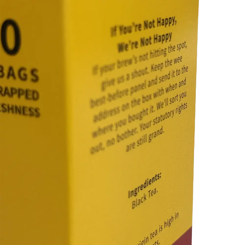 ✅ Client Impact: Belfast Tea Co. now presents its flagship product in packaging that reflects its heritage, strengthens shelf visibility and enhances customer trust — helping the brand stand out in an increasingly competitive tea market.